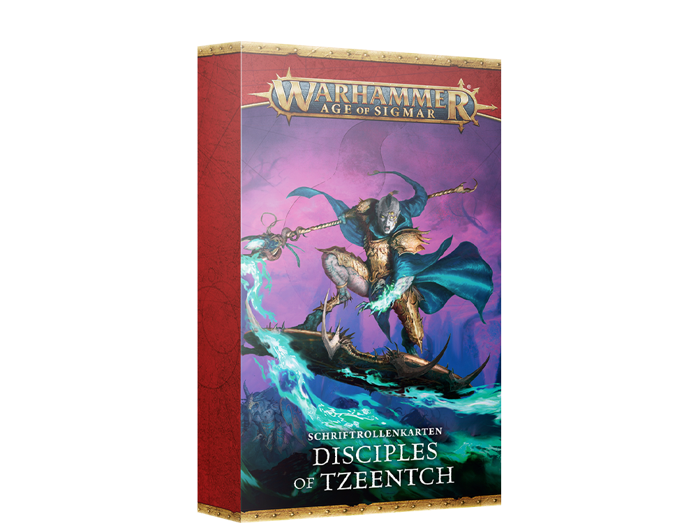 Schriftrollenkarten und Würfel der Jünger des Tzeentch
