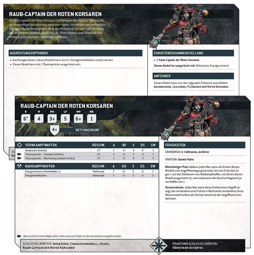 Huron Schwarzherz ist, gelinde gesagt, ein Monster. Man braucht ein paar wirklich fähige Renegaten, um mit dem Meister des Mahlstroms mitzuhalten, wenn er erstmal Segel setzt. Nicht jeder Space Marine, der seinen Orden verlässt und sich den Roten Korsaren anschließt, kann gleich zu seinen elitären Plünderern gehören. Diese stechen aus dem Rest hervor und heute werfen wir einen Blick auf ihr prächtiges, neues Datenblatt.