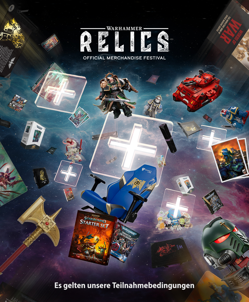 Es wird auch noch mehr Preise für andere Gewinnerinnen und Gewinner geben. Wenn du bereits ein Warhammer+-Abo hast, musst du gar nichts tun! Stell dir vor, all dieses coole Zeug zu gewinnen, ohne auch nur einen Finger krumm zu machen. Das ist das Warhammer+-Erlebnis. Es gelten unsere Teilnahmebedingungen, schau also vorher einmal rein. Wir sehen uns dann am 26. für Warhammer Relics!