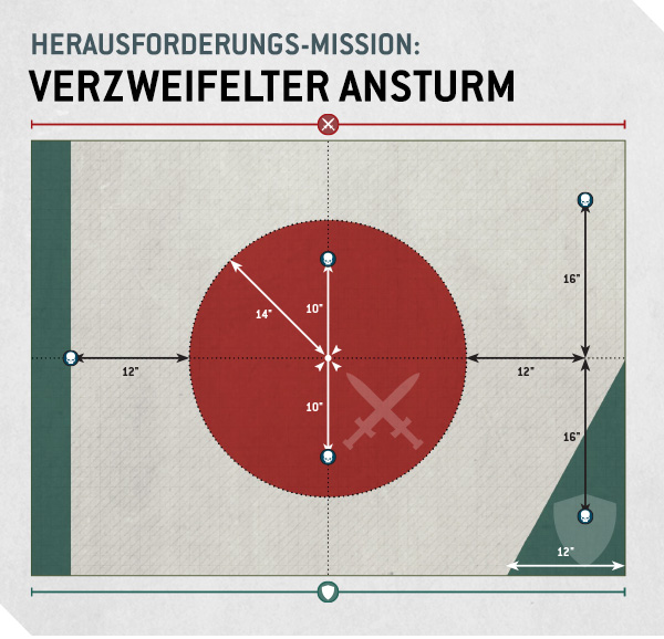 In der Mission Verzweifelter Ansturm wurde die wichtigste SPEERSPITZE-Einheit einer Seite von den Feinden außerhalb ihrer Position erwischt und muss unaufhörliche Attacken aushalten, während die Hälfte ihrer Armee in Strategischer Reserve hängt und langsam auf das Schlachtfeld kommt, während der Kampf wütet.