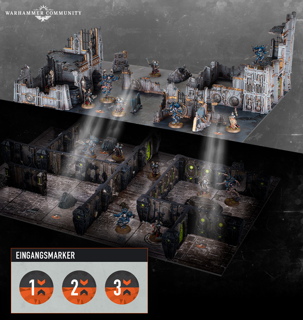Du kannst ebenso das Konzept aufgreifen und mit etwas Ellbogenschmalz deine eigenen Karten mit zwei beliebigen Killzonen bauen. Ein Spielbrett der Killzone: Bheta Decima für die obere Karte könnte Gänge über einem geschäftigen Manufaktorum darstellen, wo Wolken industriellen Smogs die Schusslinien zwischen den Plattformen verdecken. Wir sind schon gespannt zu sehen, was du dir überlegen wirst.