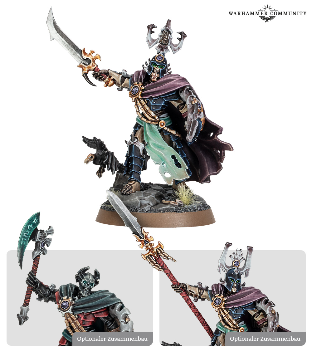 Das Berühmte Regiment der Boten des Knochentributs kann in Armeen der Höfe der Leichenfresser, des Nachtspuks oder der Seelenbrand-Grabesfürsten eingesetzt werden. Die einzelnen Einheiten, Vokmortian, Meister des Knochentributs, drei Immortis-Wächter und 10 Mortek-Gardisten, können auch als mächtige Verstärkung für jede Streitmacht der Knochenlegionen der Ossiarch eingesetzt werden. Wenn du sie als Teil einer Armee der Knochenlegionen der Ossiarch einsetzen willst, können die Immortis-Wächter alternativ als Nekropolenjäger gebaut werden.