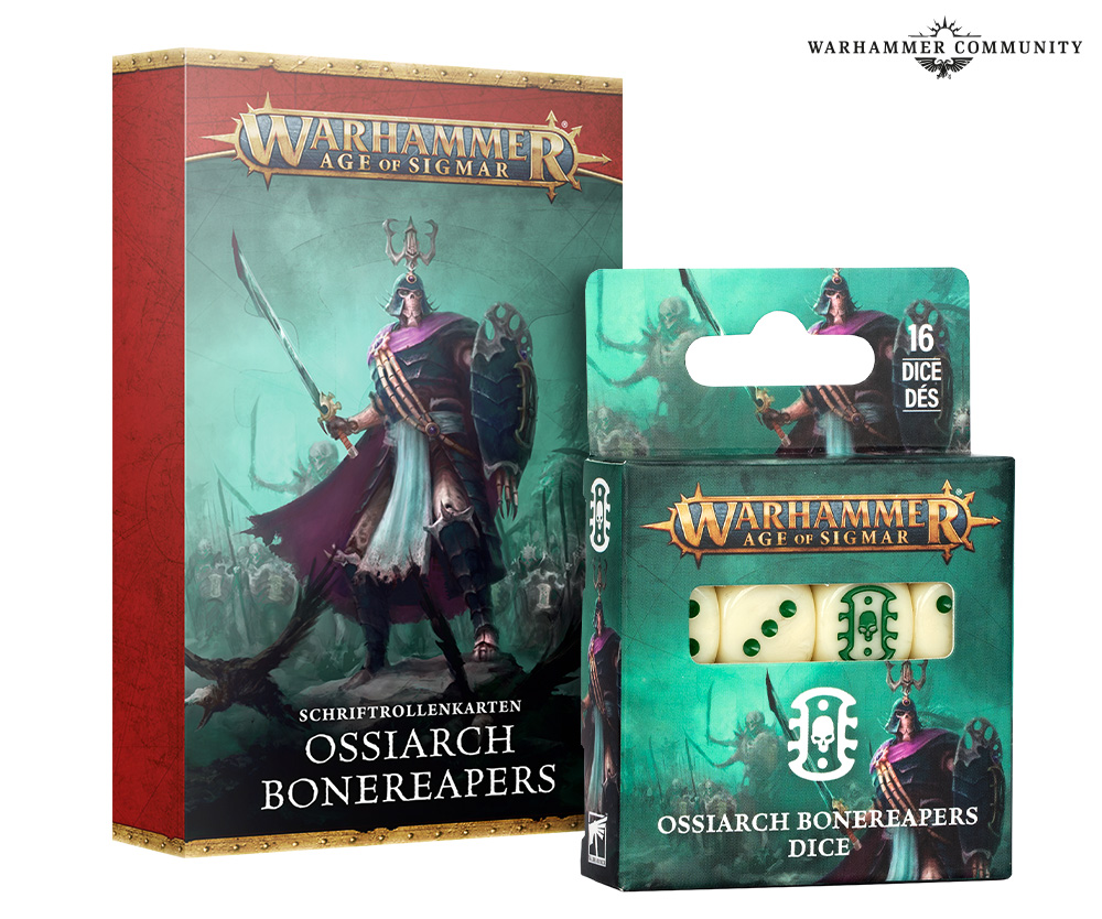 Schriftrollenkarten und Würfelset der Knochenlegionen der Ossiarch