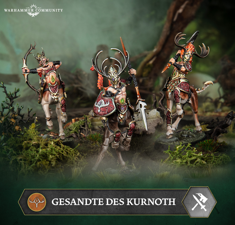 Die Gesandten des Kurnoth sind eine Aggressionskriegerschar und sehnen sich nach dem Kampf, aber die Kontrolle über dein eigenes Territorium spielt eine große Rolle in deinen Plänen, wenn du Eindringlinge verjagen willst. Es ist kein Zufall, dass sie gut zum Rivals-Deck Jagdgründe aus Warhammer Underworlds: Zwistwald passen, das wir uns später in dieser Woche noch genauer anschauen werden. Als nächstes werfen wir aber erst einen Blick auf die Stierblütigen, die sich nach Rache an den Anhängern des Kurnoth sehnen.