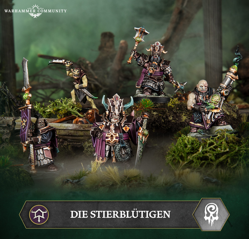 Als Duardin sind die Stierblütigen eine Kriegerschar, die langsam, aber widerstandsfähig ist. Sie sind fast gleichförmig mit 3 Bewegung über das Spielfeld unterwegs (der schlüpfrige Grisk erhält mehr Bewegung, wenn er angespornt ist). Zuldrakka, Imnidrin und Morudok haben alle beachtliche Verteidigung und Angriff, die angespornt noch steigen, und ihre wuchtigen Waffen haben Schaden 2 und die Fähigkeit, Feinde ins Straucheln zu bringen.