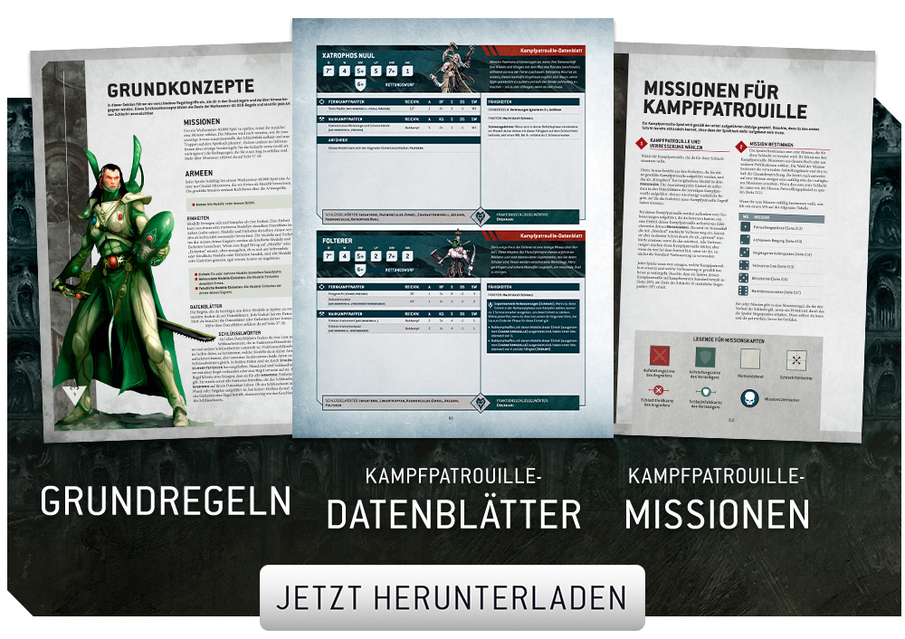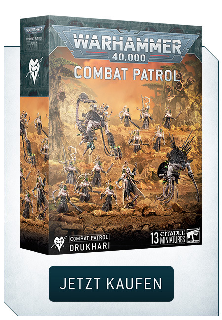 Kampfpatrouille ist ein hervorragender Spielmodus für neue und erfahrene Spielerinnen und Spieler, in dem kleinere Streitmächte in schnellen und ausgewogenen Spielen aufeinandertreffen. Die Drukhari setzen eine Streitkraft der Haemonculi ein, deren brutale Kraft und Widerstandsfähigkeit sich von ihrer üblichen schnellen, präzisen Spielweise unterscheidet. Die Haemonculi passen also gut in die raue Zone der Kampfpatrouillenspiele.