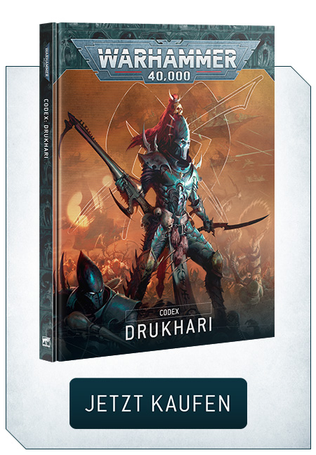 Dein erster Schritt ist der Codex: Drukhari, der unersetzliche Begleiter deiner Fraktion, in dem du jede Menge Hintergrundinformationen und eine Galerie umwerfend bemalter Miniaturen findest sowie die Regeln für 21 verschiedene Einheiten. Gemeinsam mit einer Ausgabe des Warhammer 40.000: Grundbuchs hast du alle Regeln, die du für Warhammer-40.000-Spiele in voller Größe benötigst.