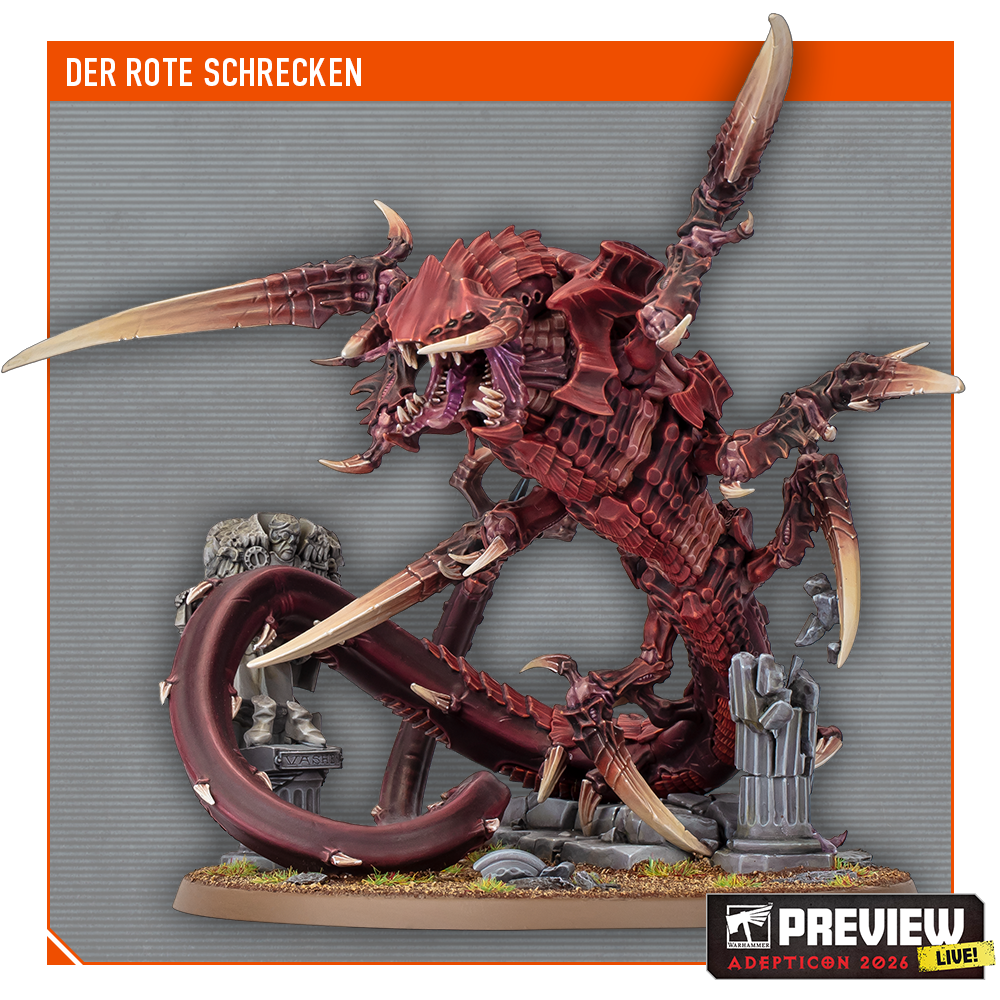Erfahrene Befehlshaber der Tyraniden erinnern sich vielleicht noch an den Roten Schrecken aus den Codices von Warhammer 40.000 aus längst vergangenen Tagen. Jetzt kehrt er zurück und terrorisiert die Galaxis einmal mehr mit seinem ersten eigenen Kunststoffbausatz. Dieses riesige, schlangenartige Monster hat die einzigartige Fähigkeit, Schaden zu regenerieren, indem es Biomasse verschlingt. Außerdem kann es unter der Killzone verschwinden und ungesehen in der Tiefe lauern, bis es bereit ist, deine Kämpfer im Ganzen zu verschlingen.