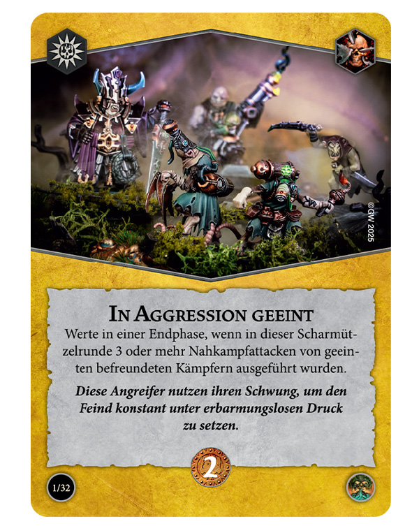Werte in einer Endphase, wenn in dieser Scharmützelrunde 3 oder mehr Nahkampfattacken von geeinten befreundeten Kämpfern ausgeführt wurden.