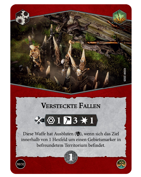Diese Waffe hat Ausbluten ( ), wenn sich das Ziel innerhalb von 1 Hexfeld um einen Gebietsmarker in befreundetem Territorium befindet.