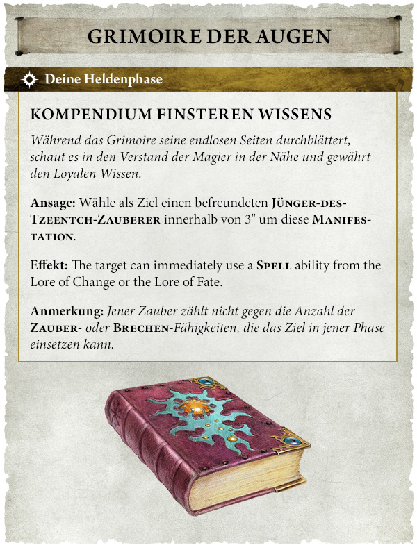 Ansage: Wähle als Ziel einen befreundeten Jünger-des-Tzeentch-Zauberer innerhalb von 3" um diese Manifestation.