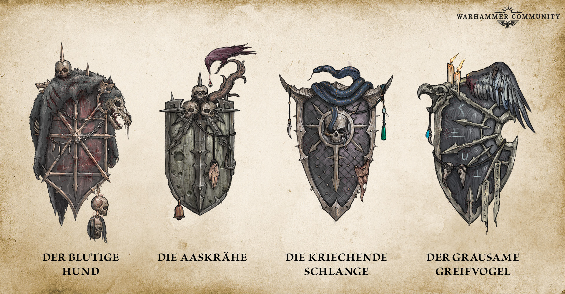 Deshalb ist die Verehrung des Chaos nicht ganz so, wie man es erwarten könnte, wenn man das Setting kennt. Rasende Berserker des Khorne oder seuchenbefallene Ritter des Nurgle sind keine alltäglichen Anblicke. Stattdessen beten die Stämme das Ungeteilte Chaos an und ehren das gesamte dämonische Pantheon als Ganzes.