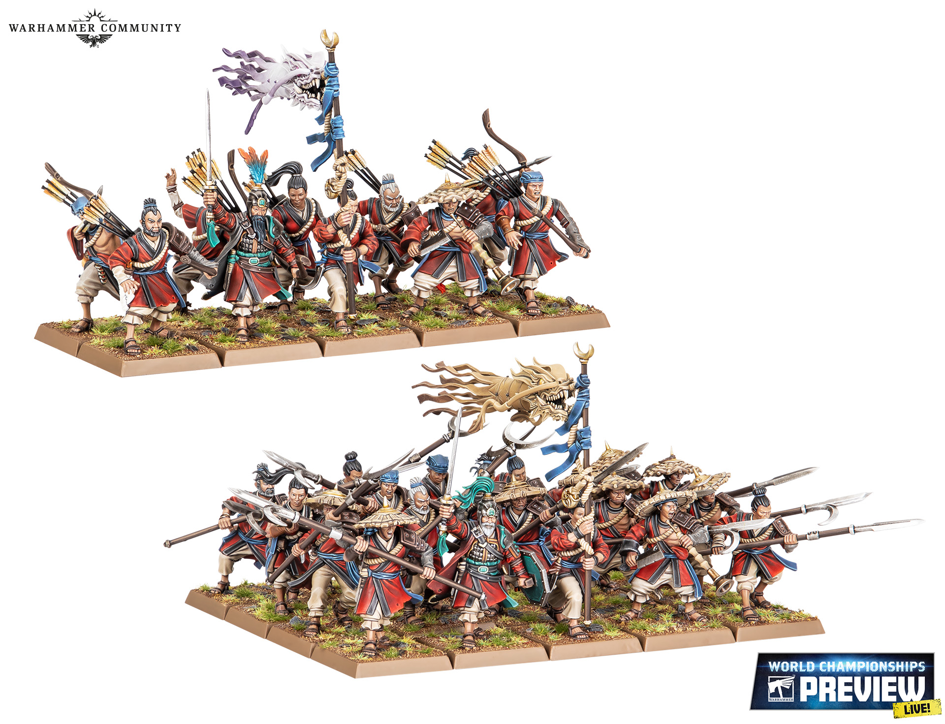 Grand Cathay is populated by hundreds of thousands of people, many of whom live outside its great walled cities in villages and small settlements. When the Celestial Dragon demands it, a province must be able to raise large peasant levies to aid the more well-equipped and professional armies. What they lack in skill they make up for in effort, wielding long spears and war bows en masse to prove their worth to the Dragons who rule them, even creating flowing cloth banners that ripple in the wind like their masters.