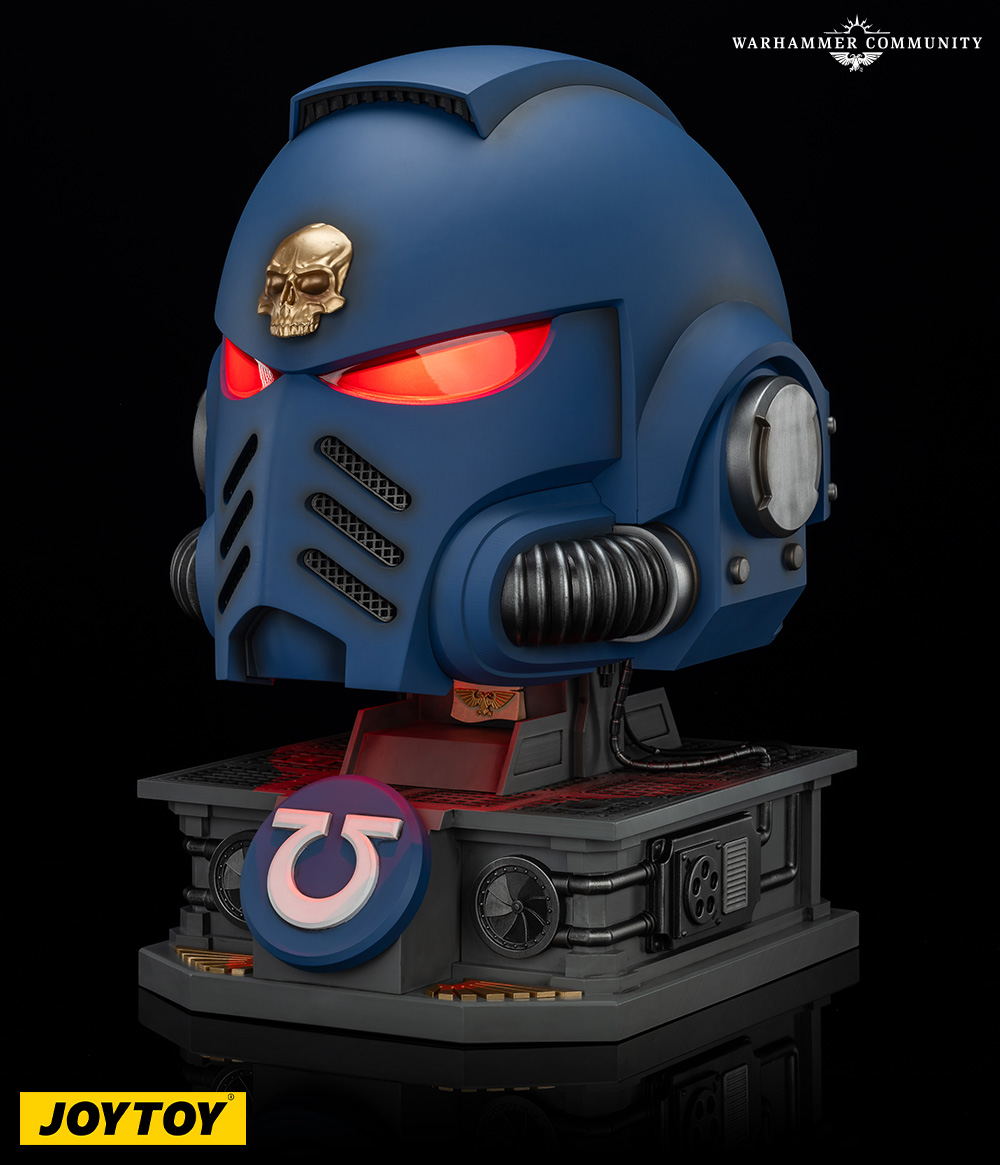 The range of wearable Space Marine helmets from JOYTOY continues to expand with a new entry fit for a Captain – the Mk X Tacticus-pattern helmet in fetching Ultramarines livery. This version features the classic gold skull emblem to denote the rank of the wearer, and like all helmets in the range, has battery-powered LED lights in the eye lenses.