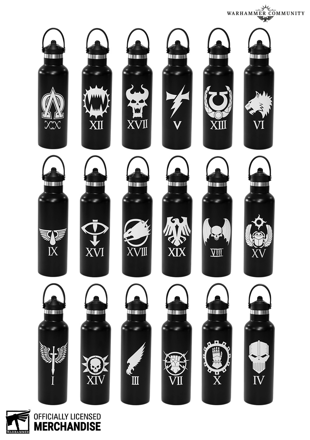 The Warhammer Merch webstore has a variety of new products available, including a range of water bottles patterned after the Legions of the Horus Heresy and new Legion wall banners.