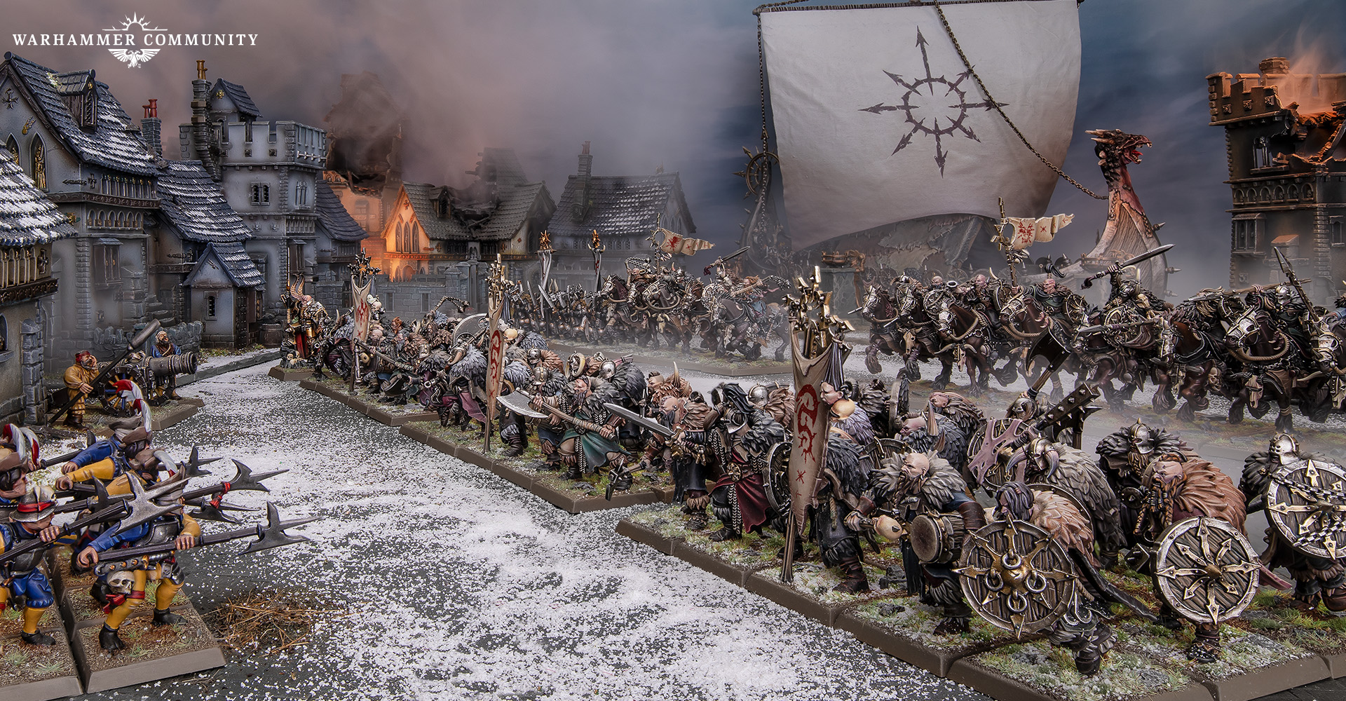 JTY: Arcane Journal: The Razing of Westerland returns to the northern shores of the Empire, where Frydaal the Chainmaker has carved a significant fiefdom for herself from lands stolen from the people of Westerland. This bloody conflict has raged for several long years by this point, and even though the arrival of the Storm Dragon at the head of a great host of Grand Cathay’s finest warriors has inspired the armies of Westerland to victory, her intervention has similarly roused ever more aspiring champions of Chaos to lead their warbands of Chaos Marauders south and join the fighting.
