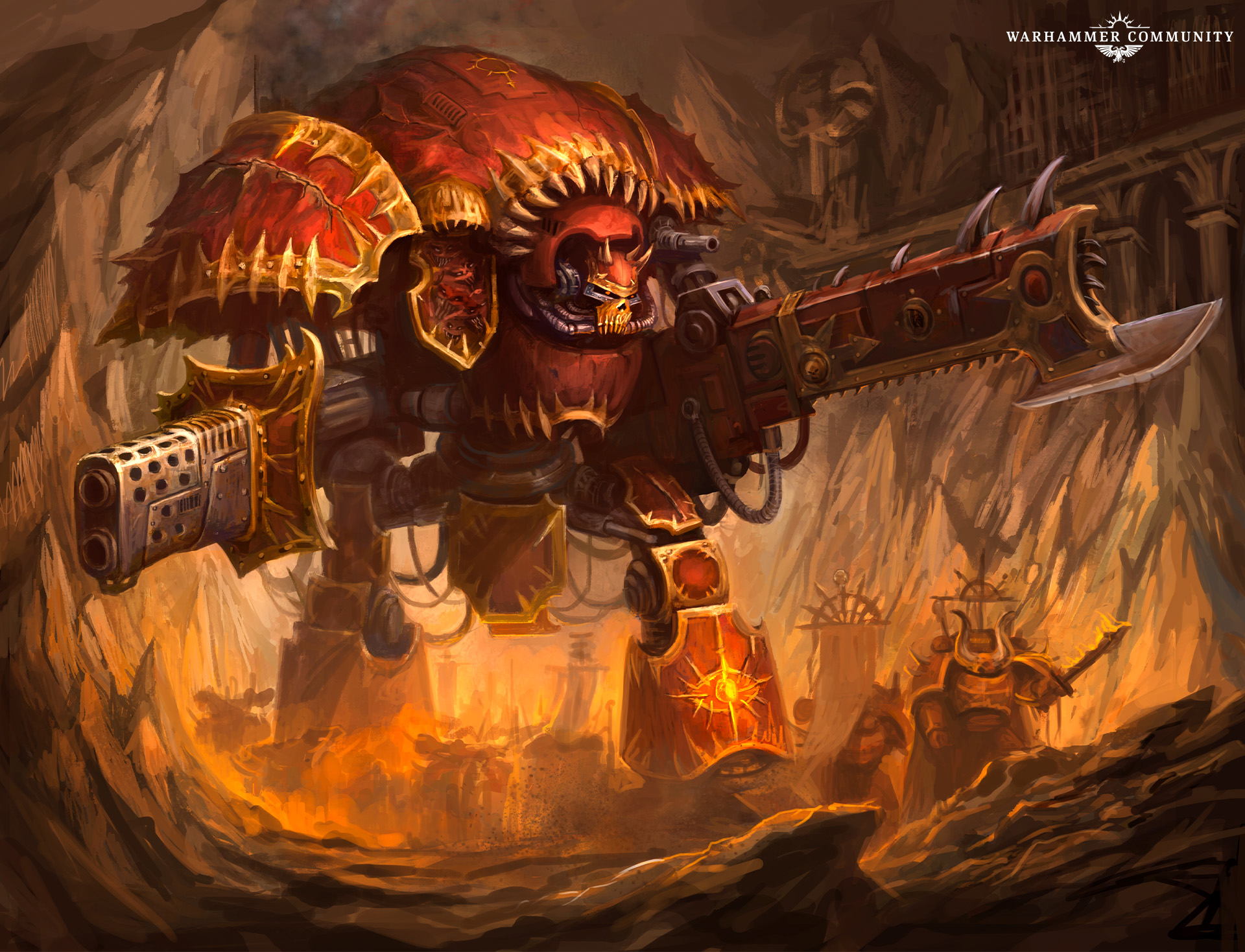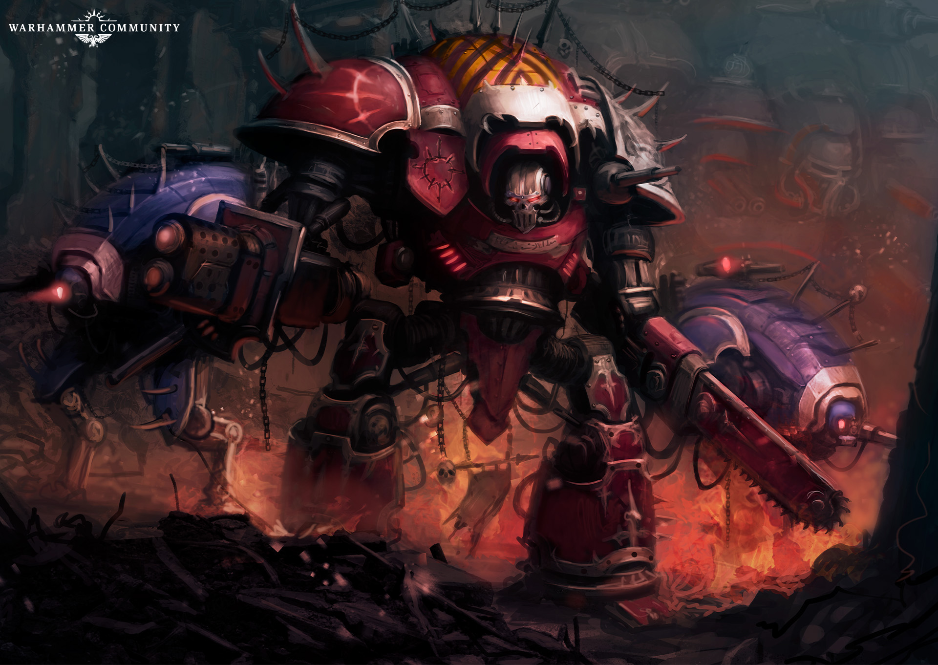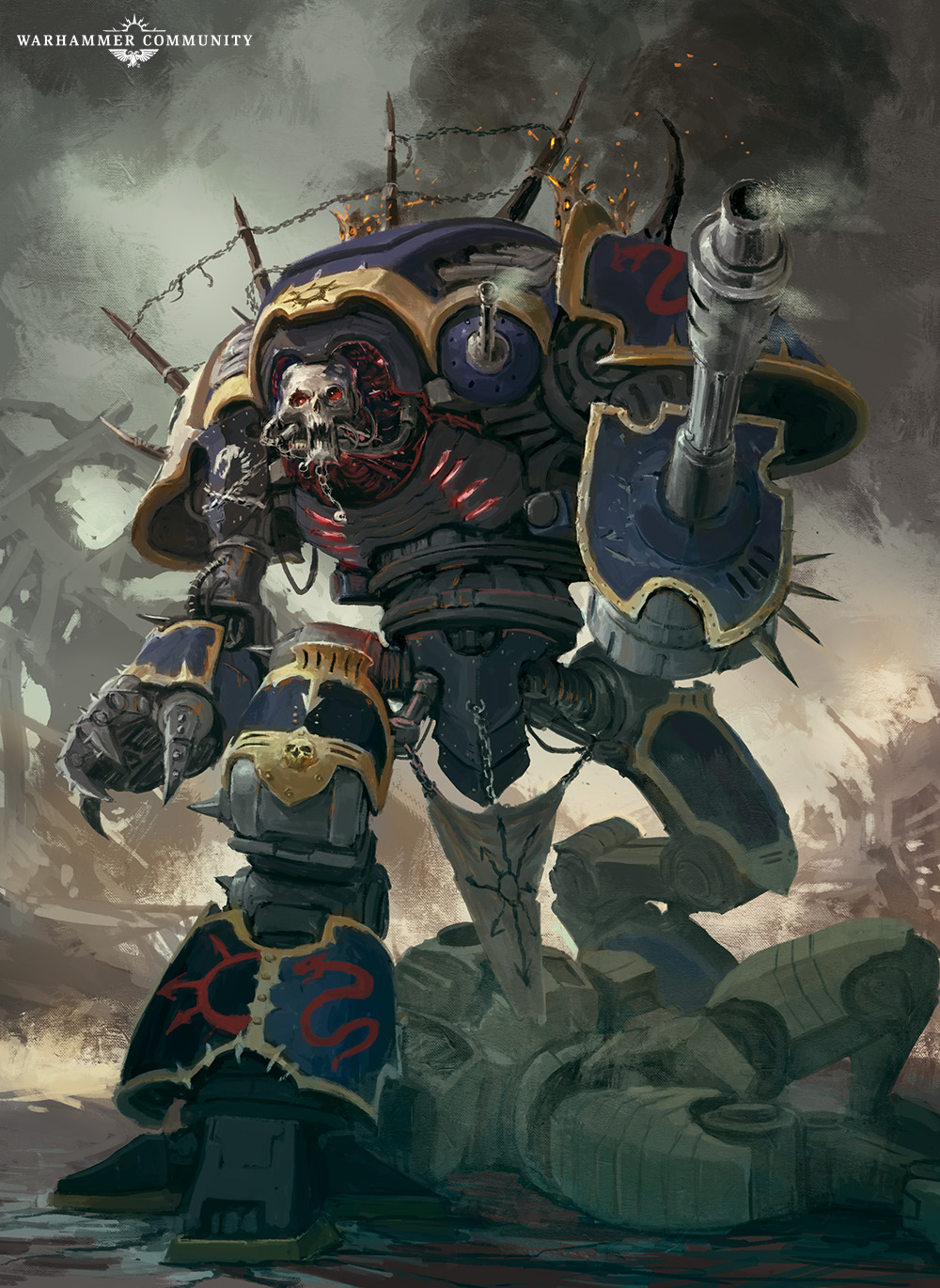 Is there anything more terrifying than the towering form of a Chaos Knight charging into battle at full tilt, stomping the enemies of the Dark Gods flat? We don’t think so, and we’ve been having a great time digging through the archives to find some awesome artwork of our favourite enormous warsuits* in action.