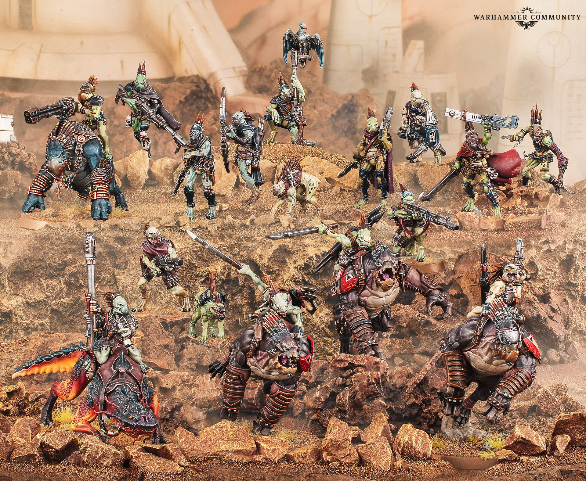 While often seen among cadres from the T’au Empire, the Kroot are a mercenary species who will quite happily ply the stars among their close-knit kinbands. Possessed of resourcefulness, savagery, and cunning in spades, they’re a terrifying prospect to face in the dark of a ship hold or on an open battlefield littered with salvage.