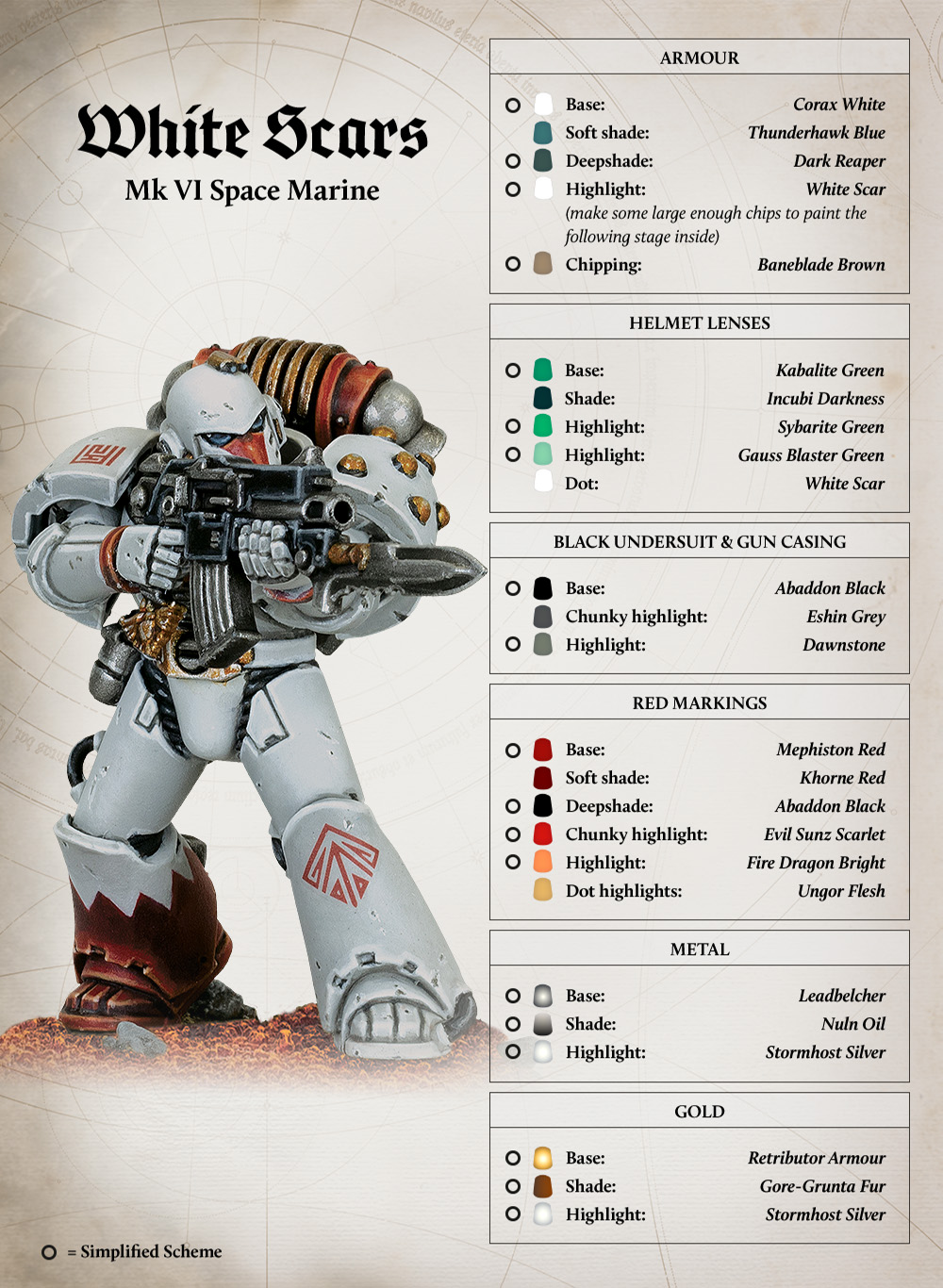 Highlight: White Scar (make some large enough chips to paint the following stage inside)