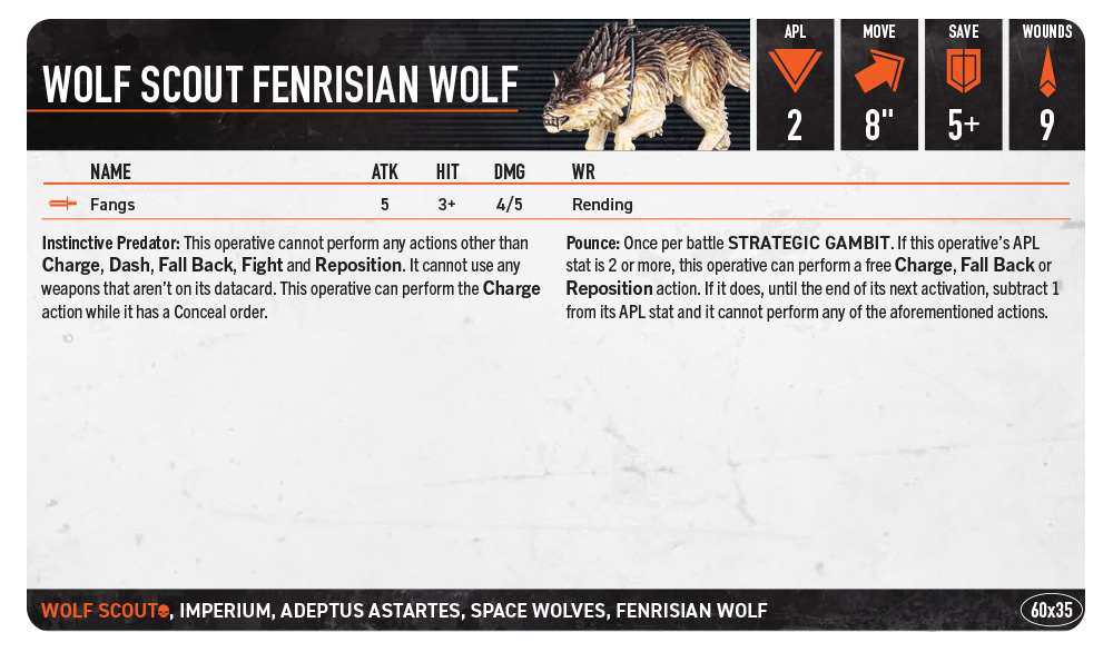 During each friendly WOLF SCOUT operative’s activation, it can perform either two Shoot actions or