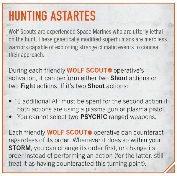 Each friendly WOLF SCOUT operative can counteract regardless of its order. Whenever it does so within your