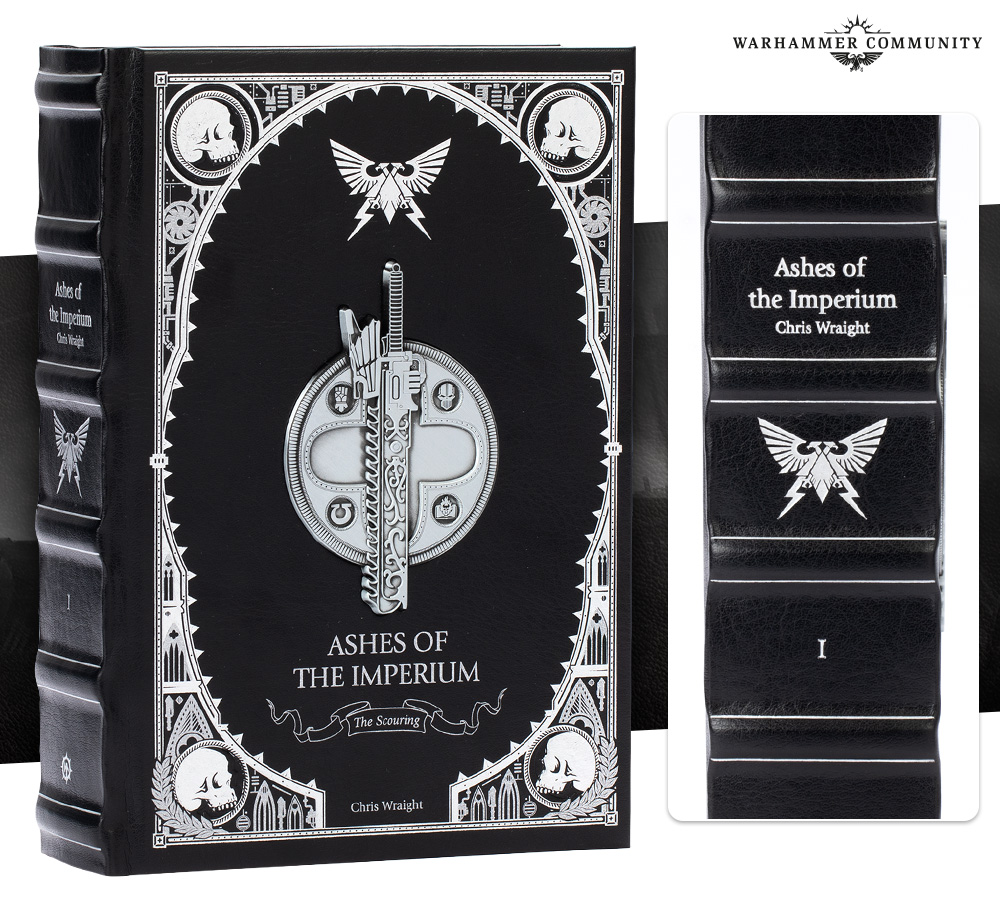 Ashes of the Imperium by Chris Wraight is the first book to explore the Scouring, the aftermath of the devastating civil war that rocked the galaxy. It is available to pre-order next week in a premium edition that features a leather effect cover, with screen-printed artwork, a metal emblem featuring the logos of the Ultramarines, Word Bearers, Iron Warriors, and Imperial Fists, foil blocking details, silver page edges, and a black ribbon bookmark. Inside you’ll find a colour insert of the standard cover art, full-colour art of Rogal Dorn and Roboute Guilliman in a tarot style, character portraits, and four pieces of black and white art that accompany the story.