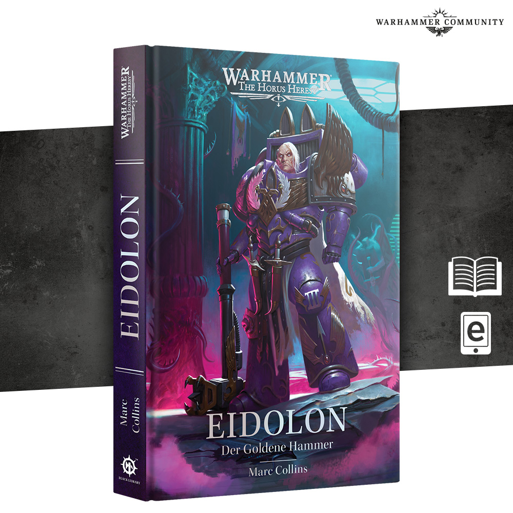 Lord Commander Primus Eidolon has claimed many titles along the annals of his infamy. He is the Exemplar and the Risen, the Soul-Severed, and the Auric Hammer. Now, fallen far from his Primarch’s grace, he carves a path to Terra, where the culmination of Horus’ grand heresy awaits. But on the way, he finds himself stranded around the world of Tatricala, where the ghosts of his past haunt every fated step. Eidolon: The Auric Hammer is available to pre-order in German Language hardback edition on Saturday, and eBook format on Friday.