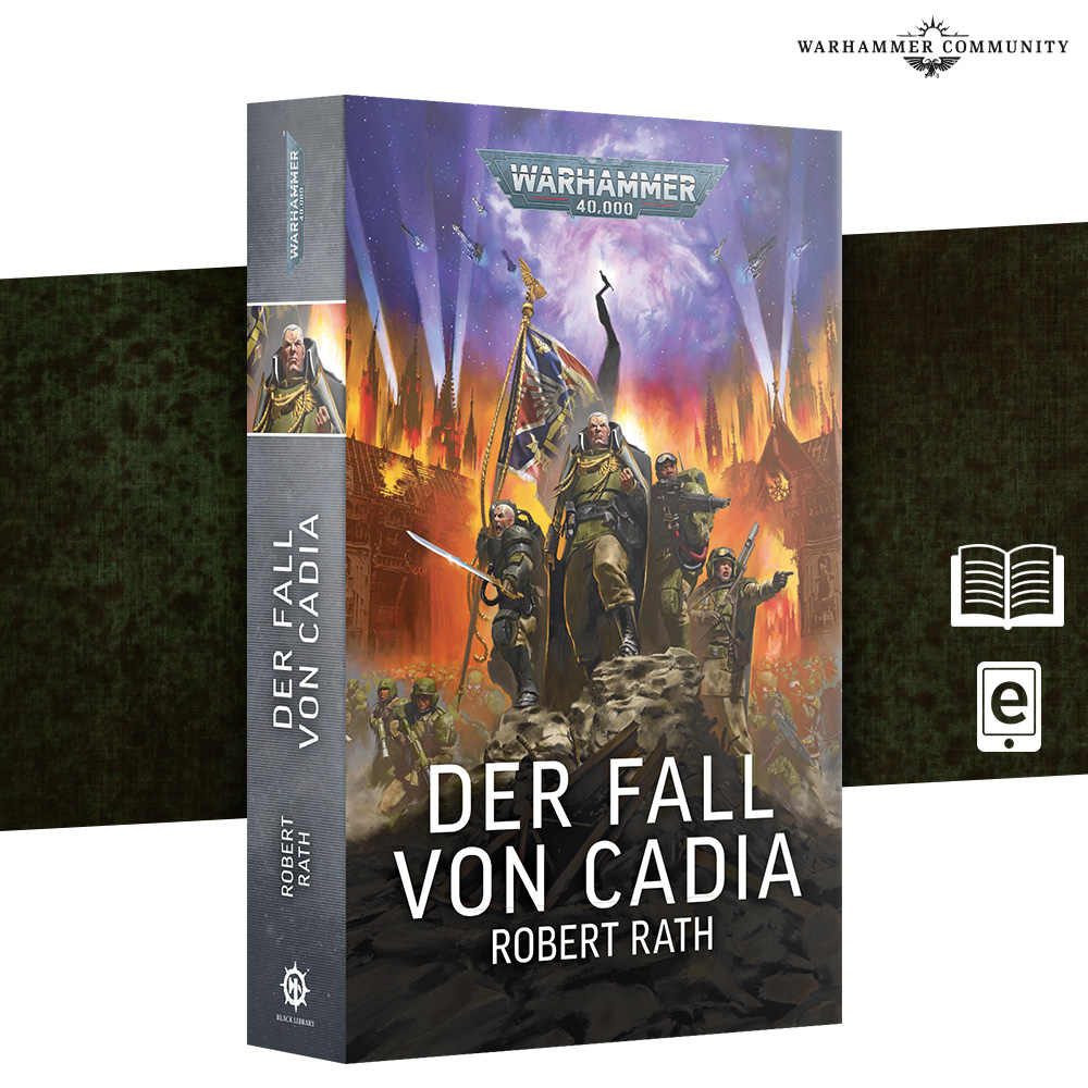 Cadia licks its wounds in the wake of the Thirteenth Black Crusade, but Lord Castellan Creed cannot rest easy. Something tells him the assault was a mere prelude to something greater. Out of the Eye of Terror comes Abaddon the Despoiler, leading a warhost unmatched in scale. In the face of the looming apocalypse, Creed must weld the champions of Cadia into a bulwark capable of withstanding Abaddon’s fury, though in orbit, the Despoiler himself finds his own alliance teetering on a knife edge… The Fall of Cadia by Robert Rath covers its story from the tables of high command to the slaughter of the pylon fields, and will be available to pre-order in German language paperback next Saturday, and eBook on Friday.