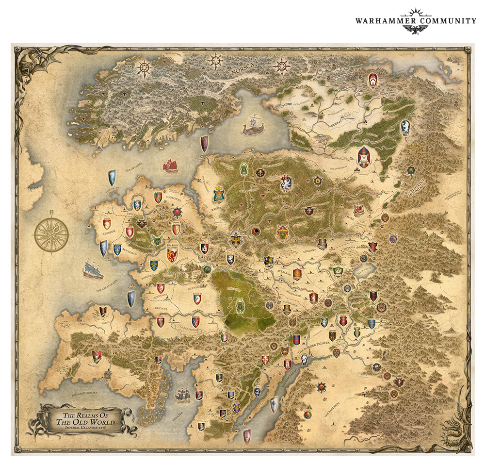 The Old World is the setting of this grand game of fantasy battles, and you can pore over every intricacy of its geography and discover the borders of every faction with this new map, updated for the Imperial Calendar 2278. It features new locations revealed in various Arcane Journals, and showcases more of the north, home of those who worship the Dark Gods. This map is printed on heavyweight poster paper, and unfolds to 1,000mm by 890mm.