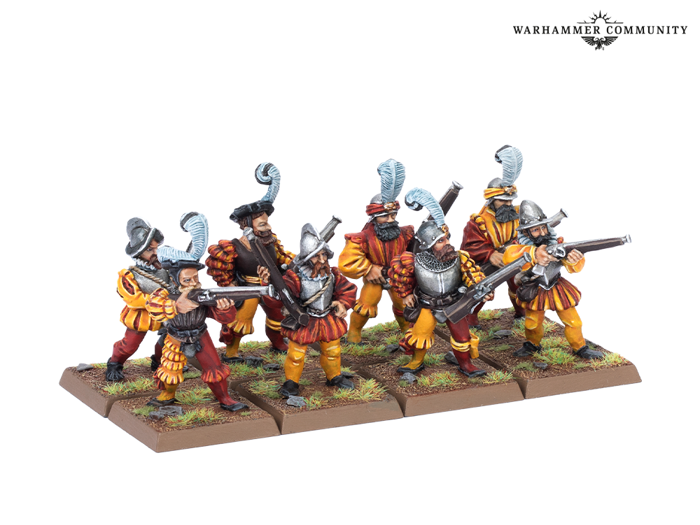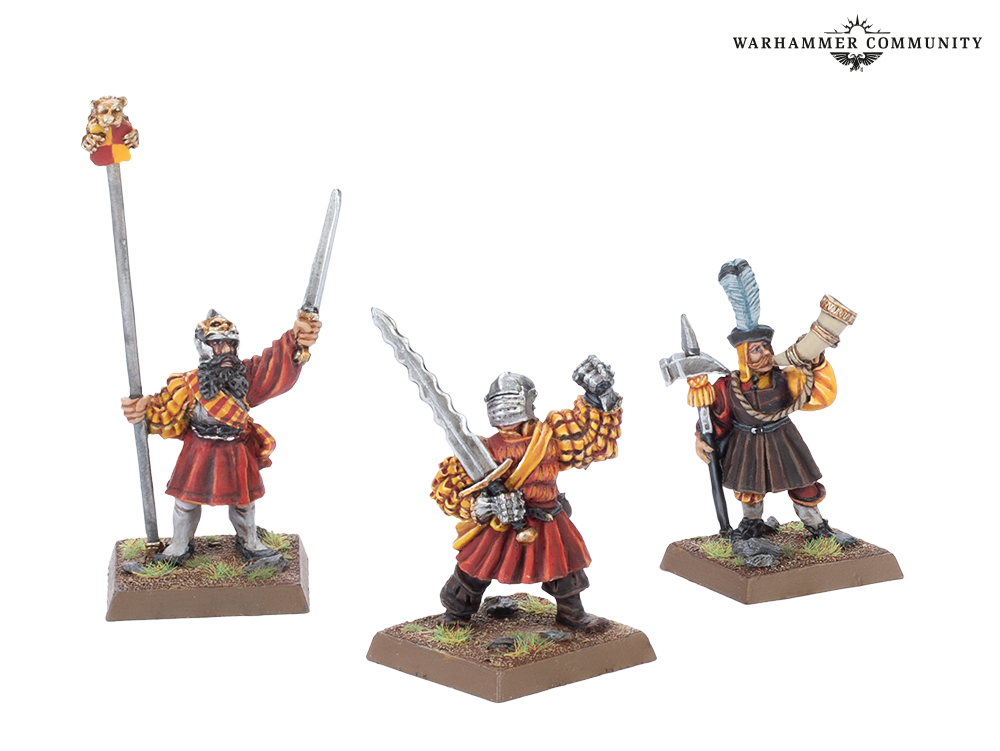 With the threat of Chaos mounting, the Empire has mustered a selection of State Troops from bygone days to help defend their borders. A set of Classic Empire Captains contains five metal and plastic miniatures armed with a variety of weapons. Also available is a set of 10 metal State Troops with Halberds, a three-strong metal State Troops with Halberds Command group, a three-strong metal State Troops Command group, a set of eight metal Empire Handgunners, and a set of 10 metal Empire Archers.