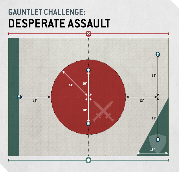 In the Desperate Assault mission, one side’s most important SPEARHEAD unit has been caught out of position by the enemy, and they must survive against unrelenting attacks while half of their army is caught in Strategic Reserves – slowly filtering onto the battlefield as the fight goes on.