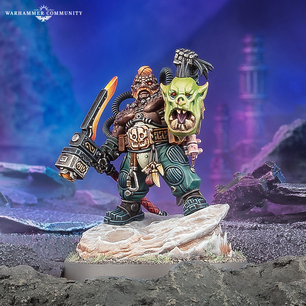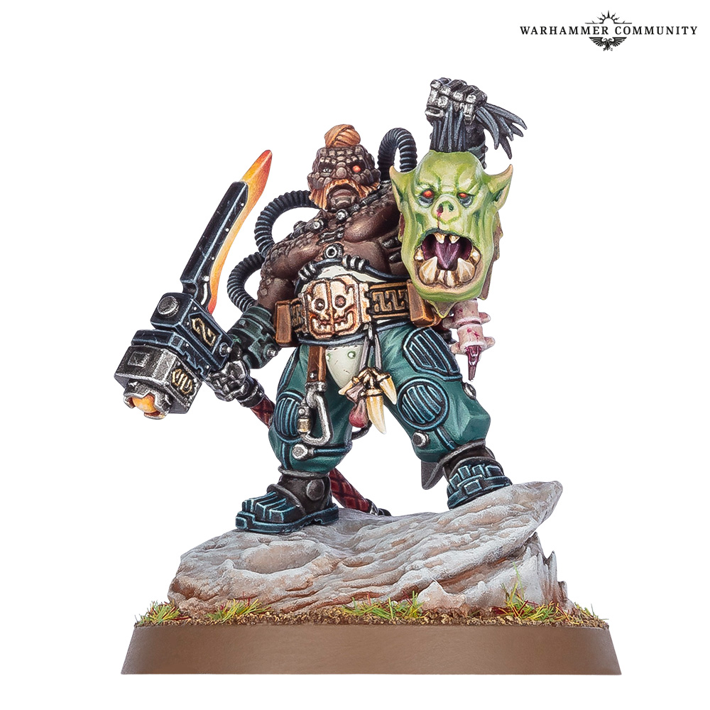 What Stornbröw lacks in stature he makes up for in raw strength and durability, as his unique cloneskein blessed his skin with a craggy layer hard enough to turn aside blades and bullets. It’s a handy party trick, given how lightly armoured the Kin of the Cthonian mining guilds are – a seriously impressive Feel No Pain 4+ makes sure he’ll survive a good few fights with enemy champions.