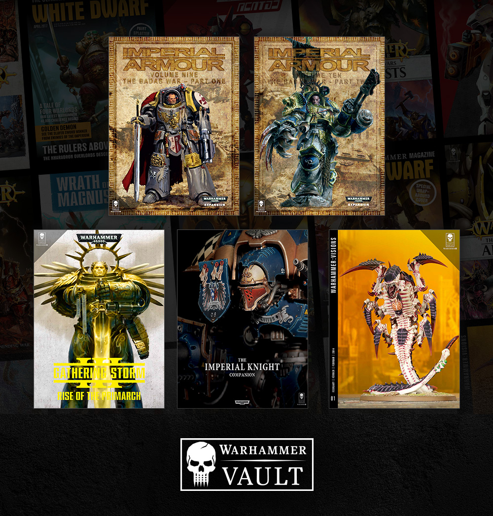 Just imagine what else you can find! The entire Gathering Storm series, telling the tale of Guilliman’s return and the Fall of Cadia? Absolutely. Every issue of Warhammer: Visions, the monthly photographic showcase magazine that Warhammer Community low-key wishes we’d bring back? Sure! The chunky The Imperial Knight Companion book that went into exhaustive detail about how Gerantius is the coolest Freeblade and you can’t convince us otherwise? You know it.