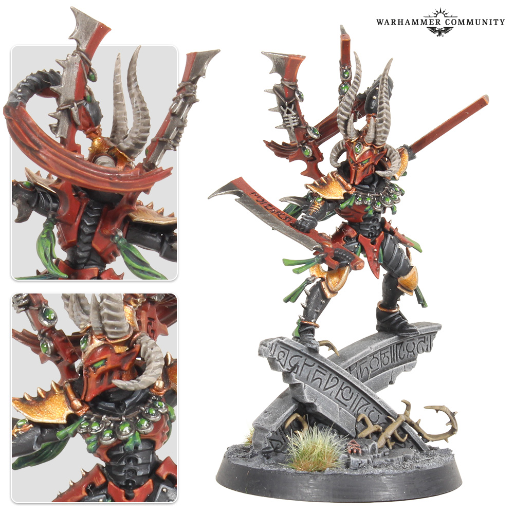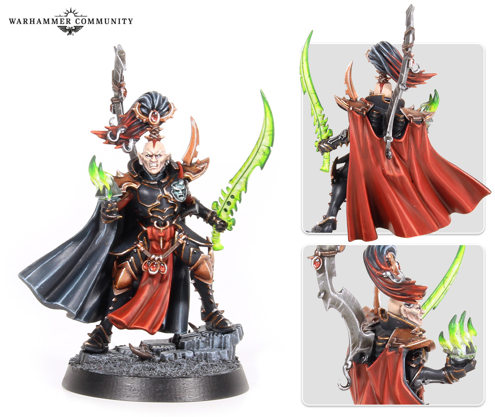 I was very fortunate to be able to paint the new Archon model, creating Kyr’adazar the Spectre, and you can see how great he looks in this scheme, too. His acid-green huskblade and soul trap show off how deadly, obscure, and sinister the dark gifts of the Commorrites can be.