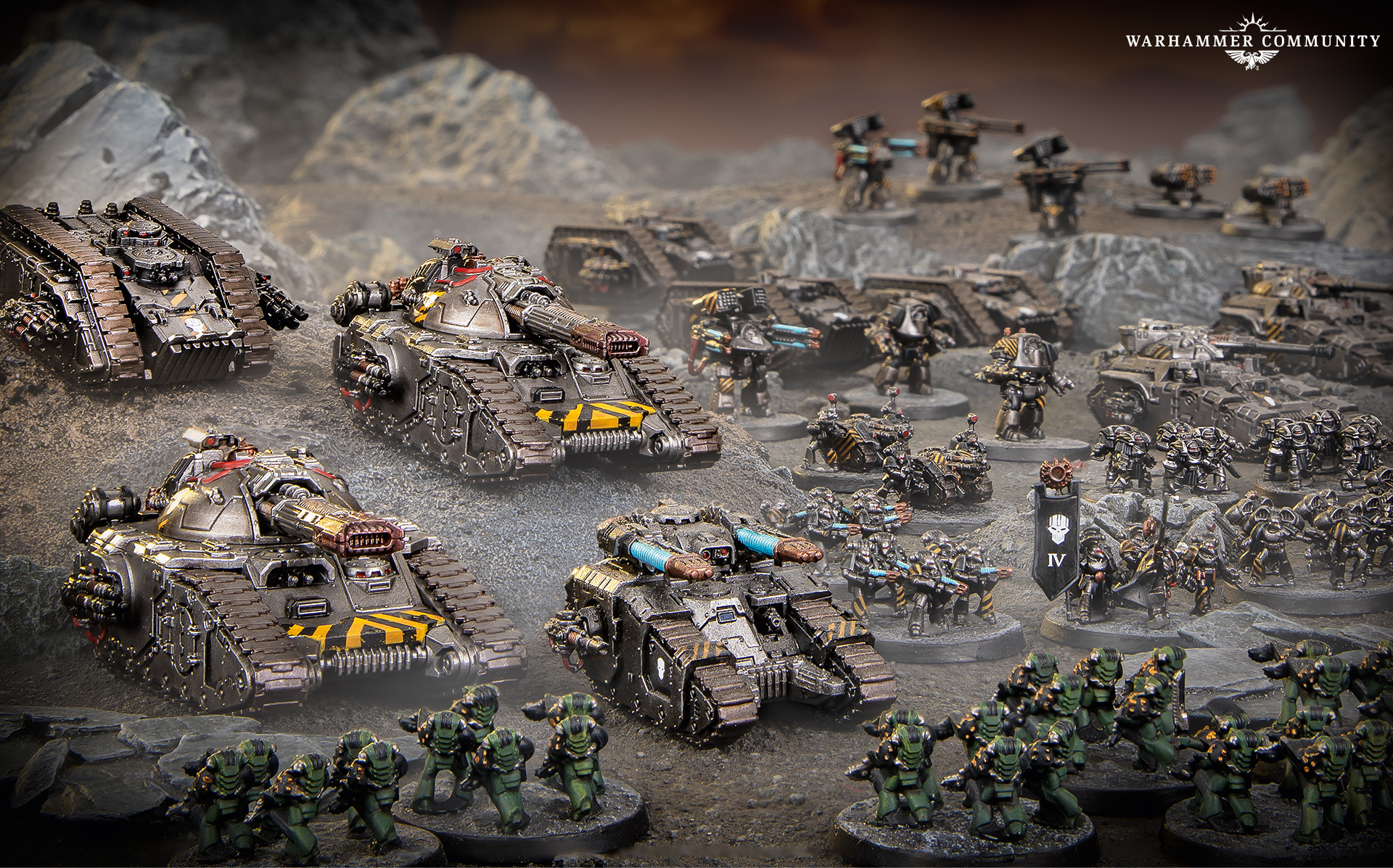 The new Iconic Formations are also fun and thematic ways to add specific groups of Detachments representing key deployments of the Salamanders, Iron Warriors, and Solar Auxilia. Saturnine Excubitor Cadres pack loads of Vulkan’s super-heavy Terminators into formidable Mastodon transports for an almost unstoppable front line charge, while the heavy and super-heavy vehicles of the Iron Warriors take centre stage in their Obliteration Centuries, which shatter enemy morale as well as armour with their massive guns.