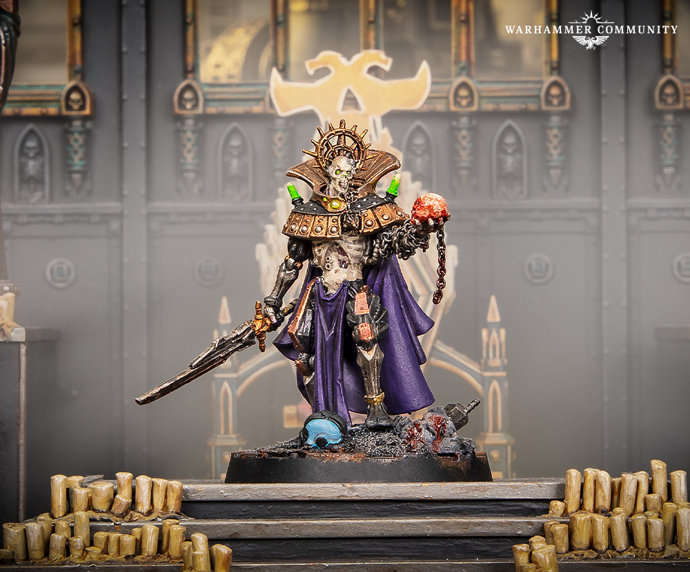 Paul: Inspired by Ozostium's particularly gothic aesthetic, I thought I'd complement the Divine Prince with a base that mixed grimdark future with a touch of classical horror. I swapped out his scenic base with one suggestive of an ancient technological laboratory or resting place that was suited to his back story.