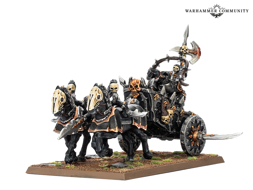 Add classic kits to your Warriors of Chaos army with a new set of Made to Order miniatures, hailing from the wild north of the Old World. Crush your foes underfoot with the deadly charge of a Chaos Chariot, drawn by two armoured warhorses and cast in both metal and plastic.
