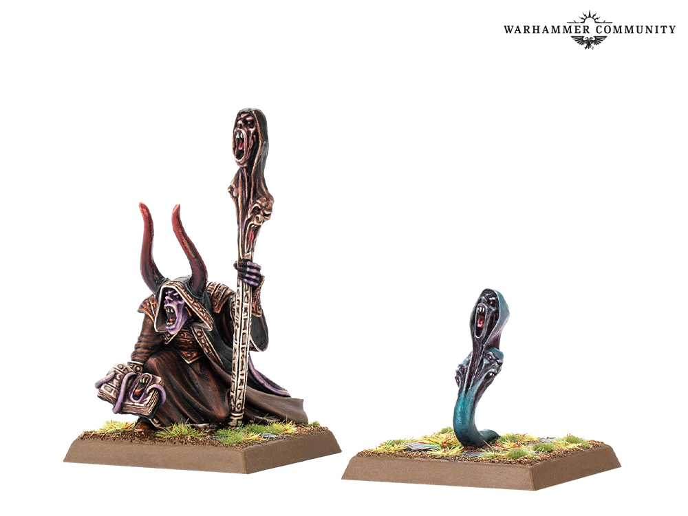 The rest are comprised of a Chaos Lord on Chaos Steed kitted out in heavy armour with a hand weapon and shield, a set of three classic Chaos Sorcerers in beautifully characterful outfits, a Chaos Sorcerer with a Lore Familiar, and a set of five metal Chaos Warhounds. All of these Made to Order miniatures will be available to purchase on Saturday for a limited time, ending at 8am GMT on Monday 26th January.