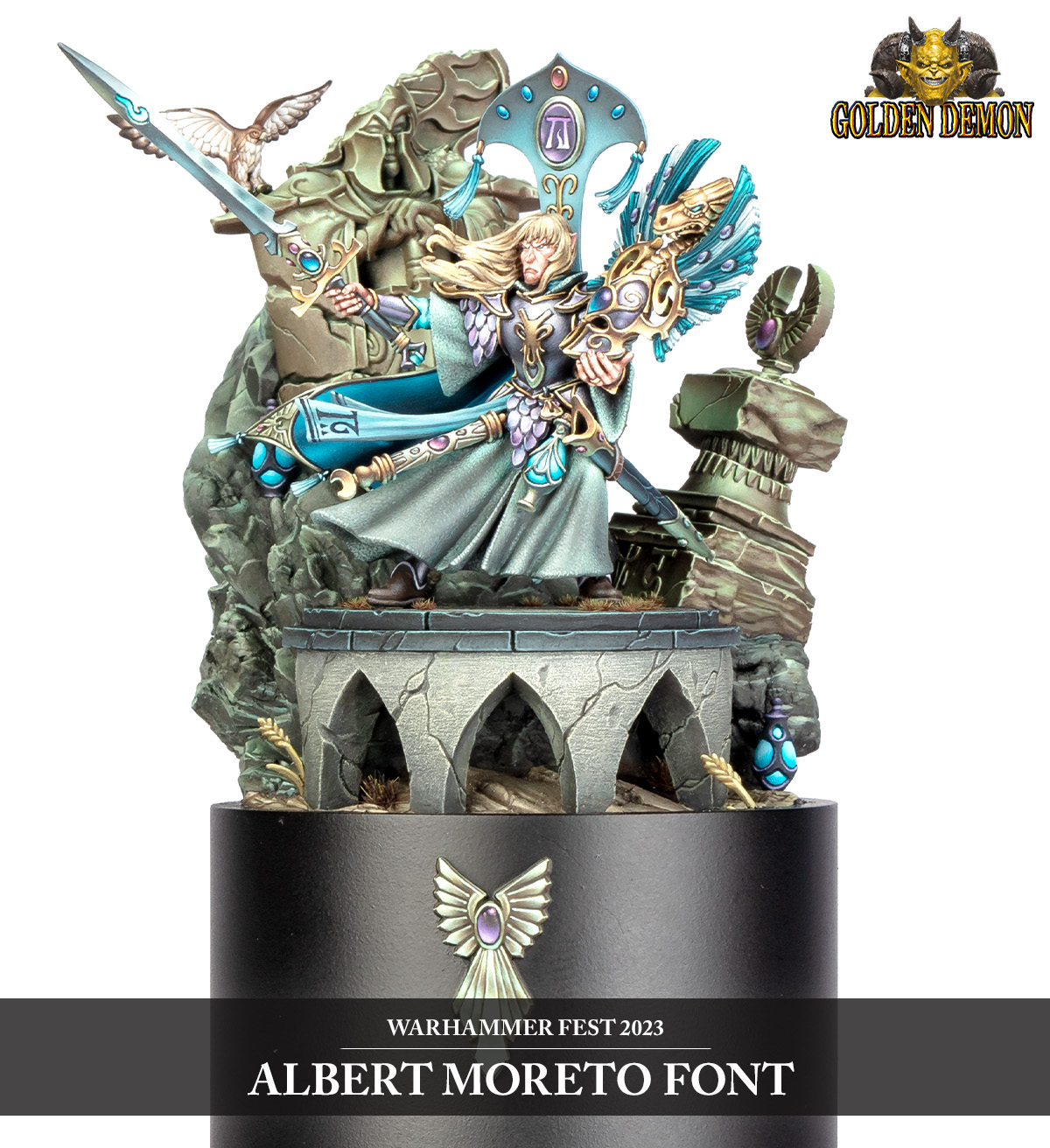 Earlier this year Borja Calvo Bertrán de Lis won the Slayer Sword at AdeptiCon for a painterly rendering of Iridan the Witness. Borja was still painting his entry in the hotel the night before entering – proof that you can never spend too long on your miniature, especially when it’s covered in dozens of individual feathers to paint. In his post-win interview, Borja mentioned that one of his favourite parts of the event was being with friends and other painters, and rooting for them to win in their respective categories.