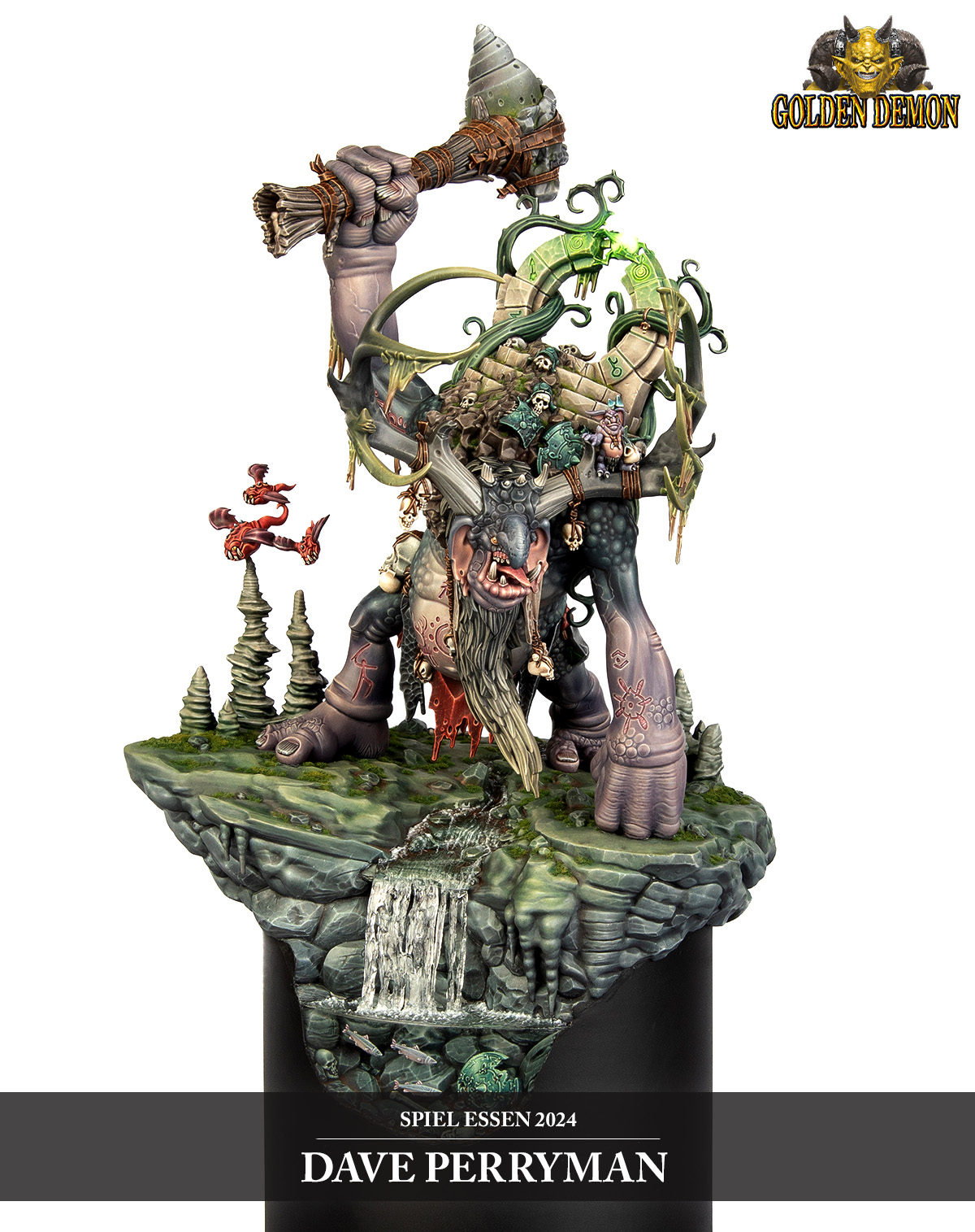 The second leg of 2024 saw Dave Perryman lift the Slayer Sword for his jaw-dropping Trugg the Troggoth King. A large miniature covered with details and textures is always a daunting task, and Dave explained that he spent hundreds of hours rendering it all equally, adding in extra areas of texture for more impact. He noted after the event that the resin pour on the base was particularly nerve wracking, and that he reached out to members of the wider painting community for advice on how to approach it – some of whom he was able to meet at Golden Demon itself.