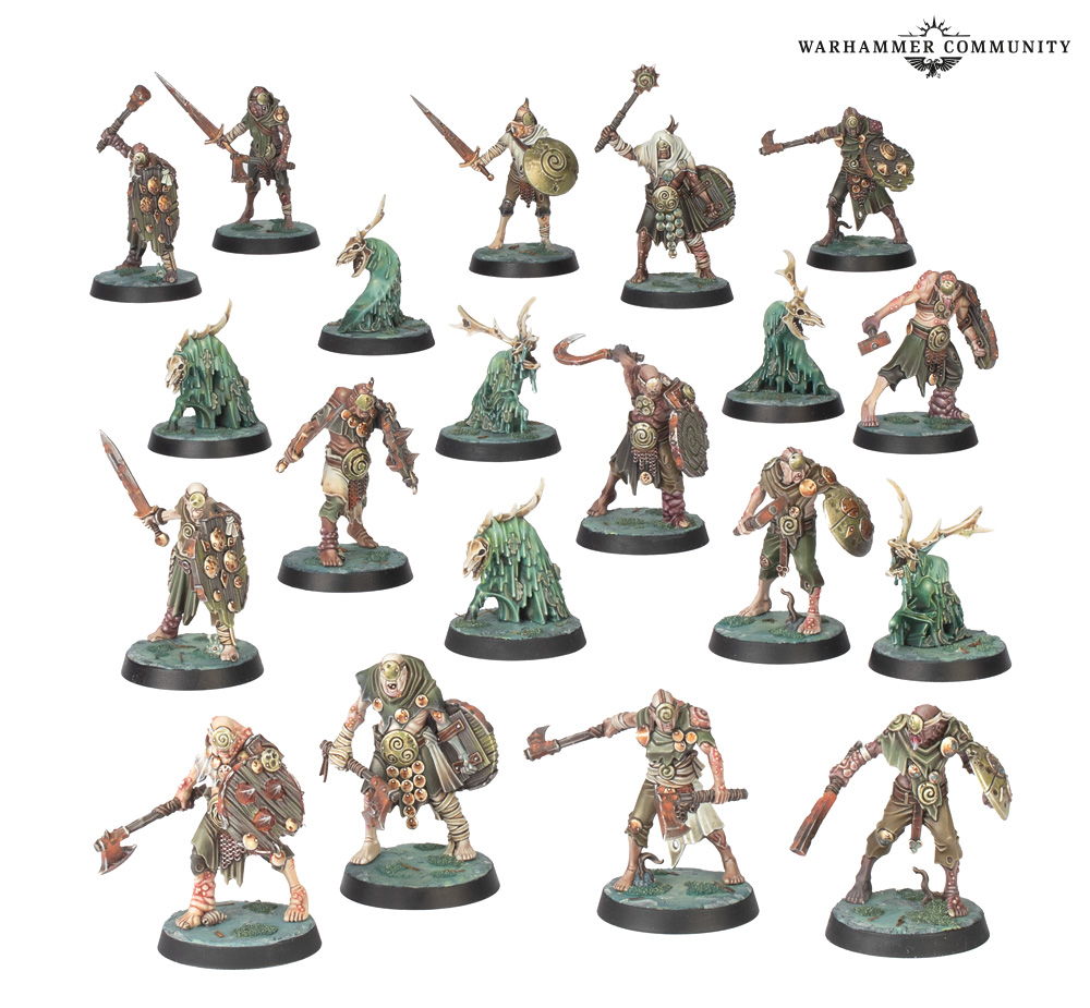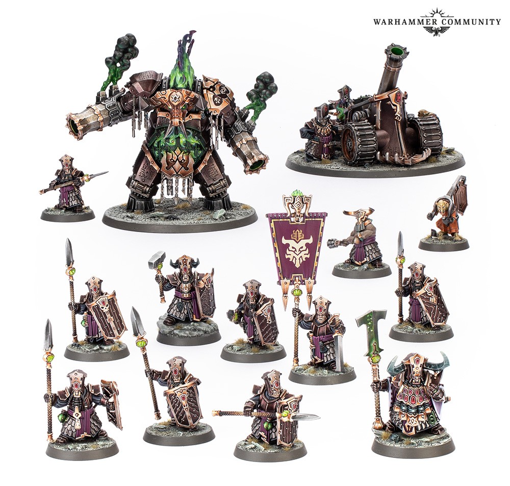 One of the two Regiments of Renown in Battletome: Maggotkin of Nurgle is The Pustules, a tallyband of Plaguebearers charged with spreading disease across the land. They seed a Feculent Gnarlmaw when they arrive, providing them with healing and regeneration, and a Spoilpox Scrivener ensures they get on with their important work without delay. This box is available while stocks last.
