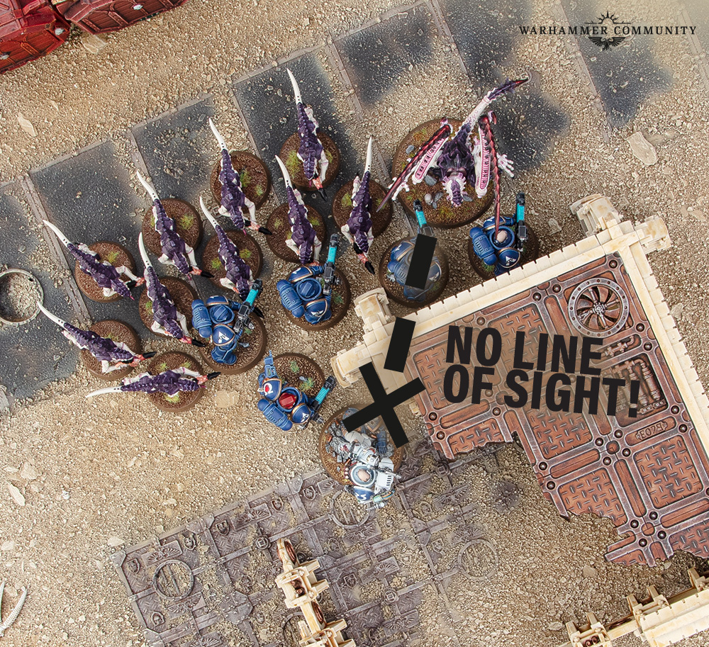 Some units such as the Master of Executions, Sicarian Ruststalkers and Lictors have the Precision ability on their melee weapons. This means they can direct attacks at Characters attached to units. You don’t have to declare you’re targeting a Character until saves are made. So if you roll badly, you can cut your losses and put the wounds on the unit instead. It’s worth noting that Precision can only be used if the target Character is visible to the attacking models. If they’re behind a wall, for example, they can’t be picked out.