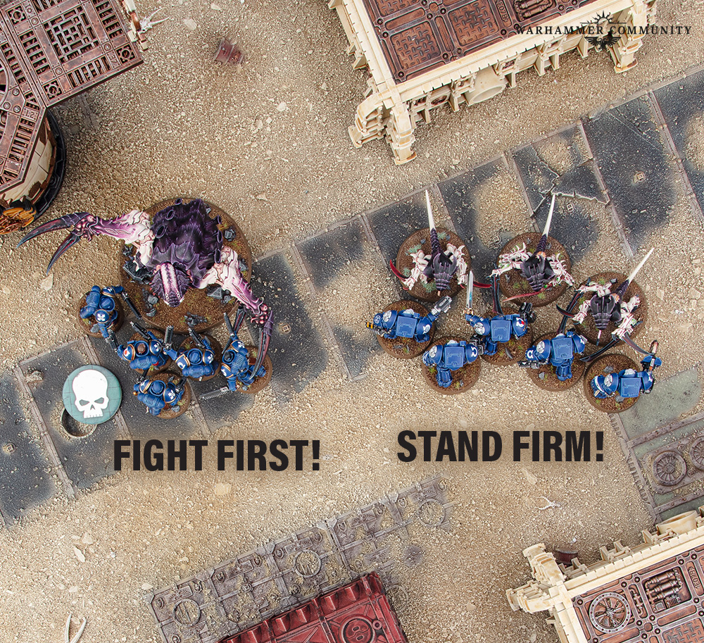 Stephen: Why would you want to get into combat? Put simply, it’s the best (only) place to use your units’ melee weapons. If you’ve got some hard-hitting units armed with powerful weapons, you certainly don’t want to waste them. For armies such as World Eaters or Orks, getting your models into Engagement Range is crucial to the success of the army.