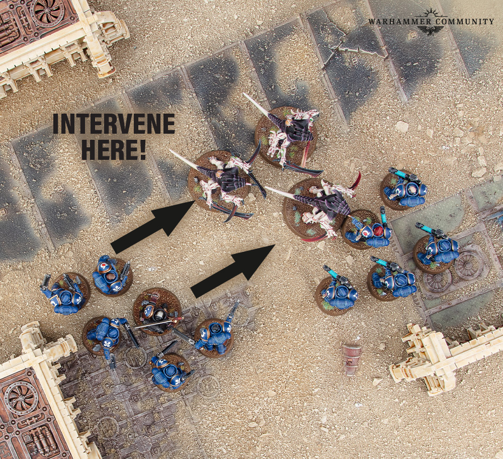 The Heroic Intervention Stratagem is a great way to get an extra move out of one of your units. It might even help you get valuable OC onto a crucial objective. It can be especially useful, though, for disrupting an enemy charge as you get to perform this action before your opponent does their Pile-in moves. Units that have Fights First (Howling Banshees, Mephiston, Lucius the Eternal if he’s not leading a unit, and so on) are super powerful when combined with this Stratagem, and there are some units that can do it for free.
