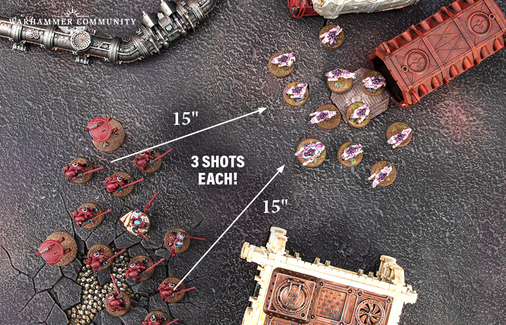 which means that, if they Remain Stationary, they will hit on 2+ and 3+ respectively (that’s 83% and 67% accuracy). With their unit ability that allows them re-rolls to wound against Monsters and Vehicles, they are lethal if you pick the right target for them.