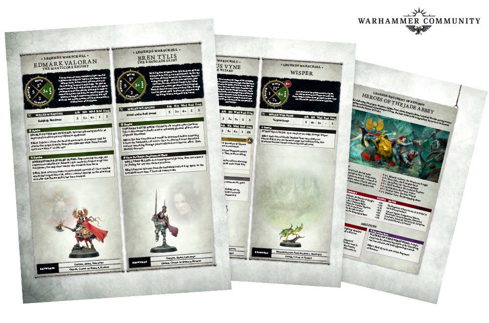 The whole gang are collected together as the Heroes of the Jade Abbey Regiment of Renown for the forces of Order, which increases in points depending on the heroes you add to your questing party. You can take just one hero, or any combo you want, up to using all seven in one hefty regiment. All of their unique equipment and abilities are translated into Warhammer Age of Sigmar abilities, and while they stay together they get extra melee attacks.