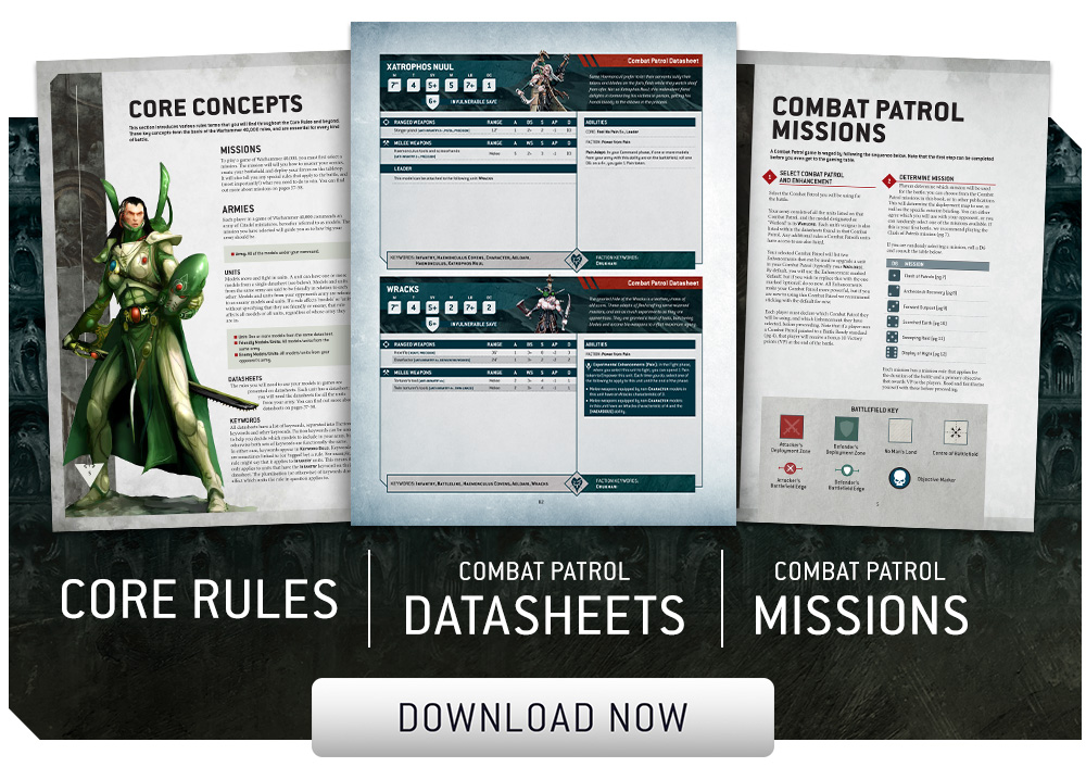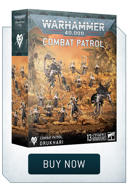 Combat Patrol is a game mode perfect for beginners and veterans alike, in which smaller forces clash in fast-paced, balanced games. The Drukhari deploy a force from one of the haemonculus covens, opting for more brute strength and durability than their usual fast and precise game plan – a good fit for the rough-and-tumble arena of Combat Patrol.