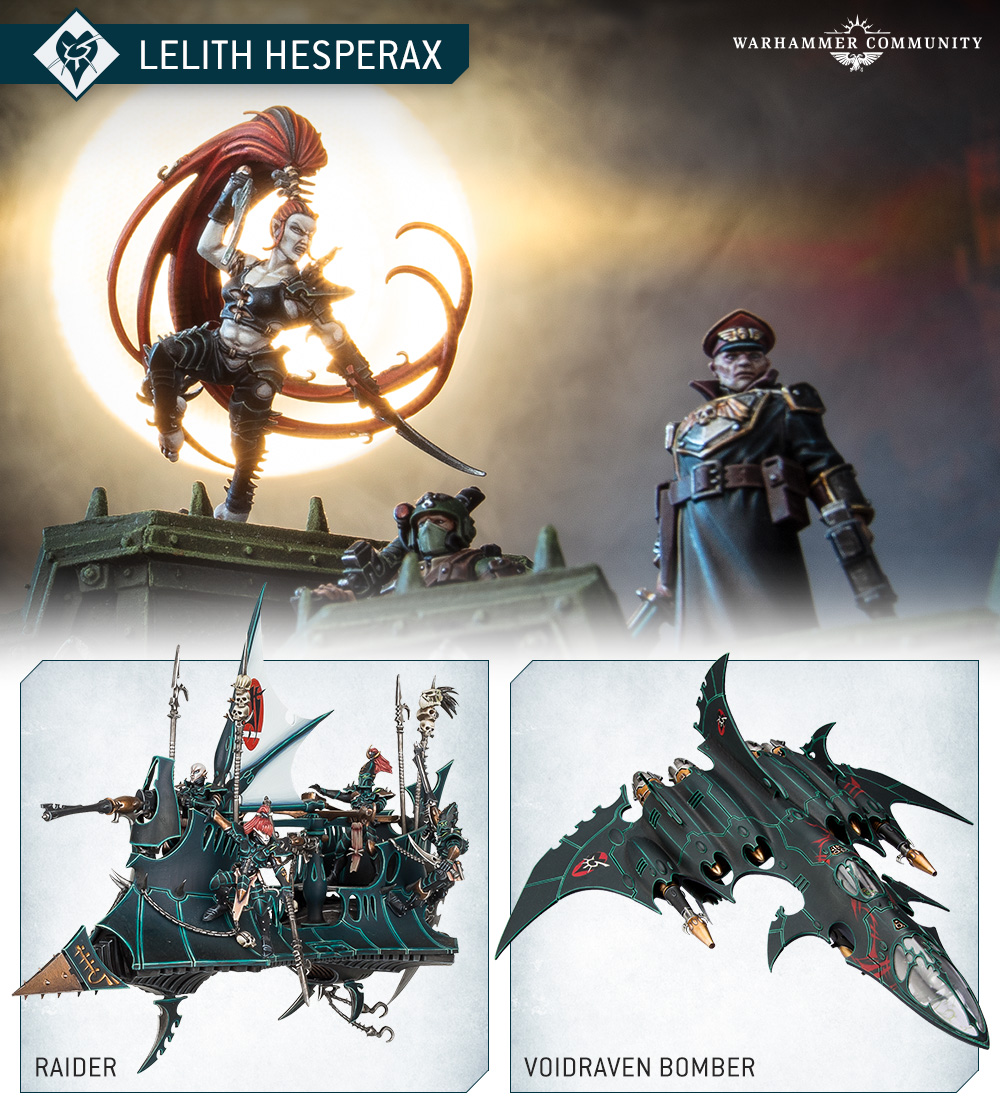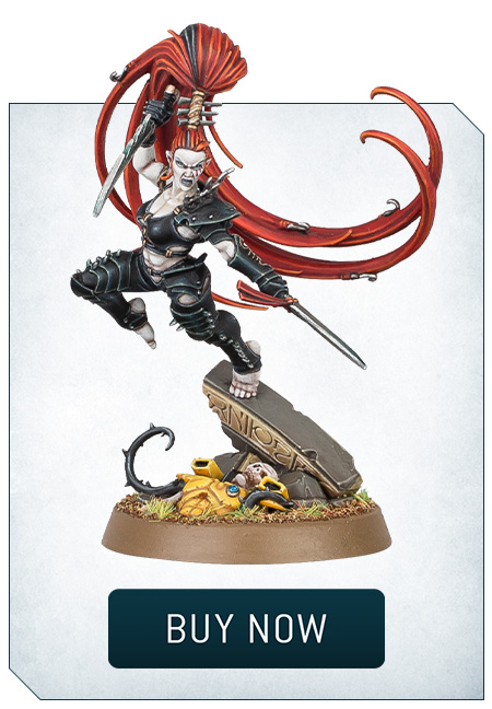 Few ambitious individuals make it to the top of the Commorragh food chain without finding a knife in their back, so those names known across the Dark City belong to the truly exceptional – like Lelith Hesperax, a gladiator of such impressive lethality that she’s known as the Queen of Knives. She’s an incredible leader for your Wyches and extremely deadly to enemy Characters, who find blades stuck firmly in their jugulars before they can lift a finger.