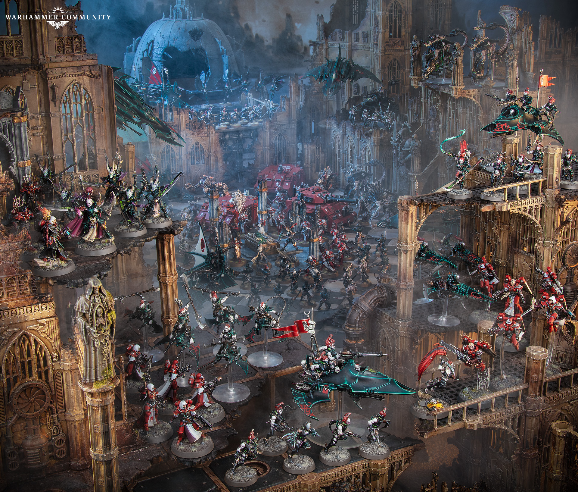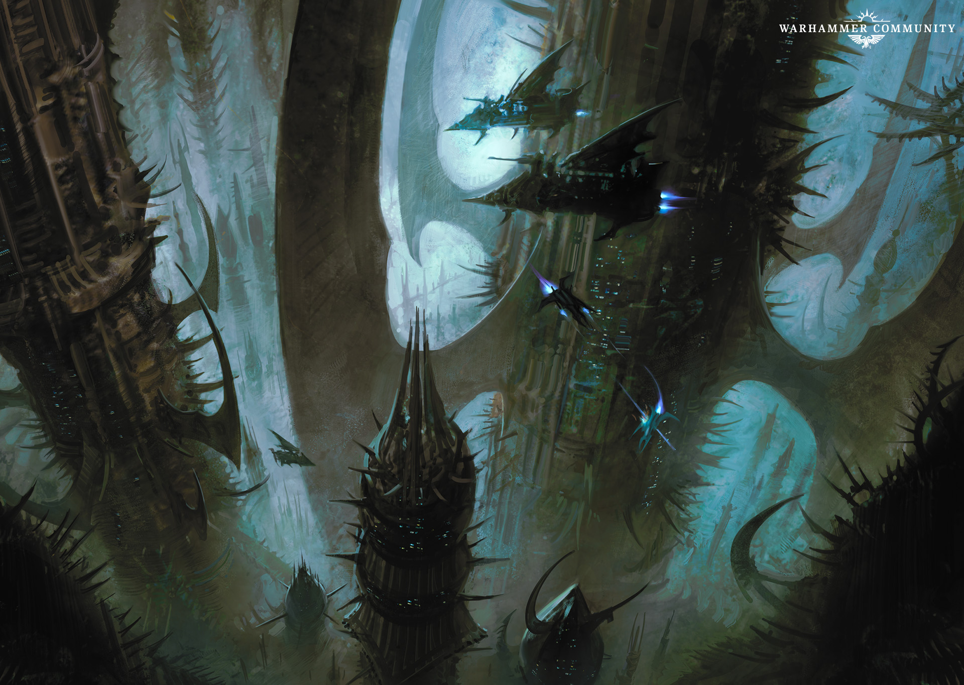 When the ancient Aeldari fractured their empire and birthed the Chaos God Slaanesh with their rampant excesses, many fled to the stars on enormous craftworlds in the hope of finding new lands. Those in the city of Commorragh – a wretched den even at the height of the Aeldari’s warped decadence – found that they survived with only scarred souls, though they would forever need to feed upon raw emotional sensation to stave off She Who Thirsts.