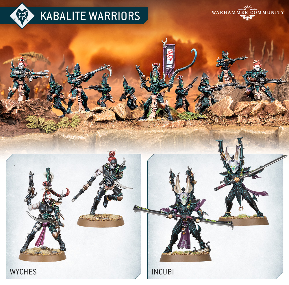 The Combat Patrol gives you a solid starting force based around the haemonculus covens, so the next logical step is to branch out with some Kabalite and wych cult units. Kabalite Warriors are the backbone of many raids, and can lay down a withering hail of firepower with poisoned splinter rifles that specialise in killing infantry – wounding the mighty Custodian Guard as easily as they would a regular Guardsman.